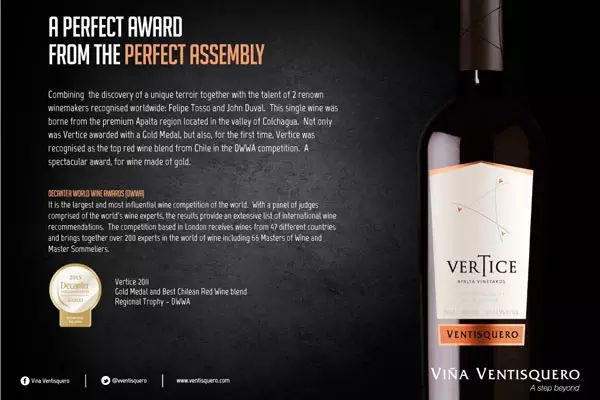 另外,該雜志還舉辦了極具影響力的醇鑒葡萄酒國(guó)際大獎(jiǎng)賽(Decanter World Wine Awards,簡(jiǎn)稱 DWWA)。該賽事始于 2004 年,一直是歐洲最杰出的葡萄酒競(jìng)賽之一。同《醇鑒》評(píng)分體系一樣,該大賽也是采取 20 分滿分制,14.5 分以下沒(méi)有獎(jiǎng)項(xiàng),14.5-15.4 分為推薦獎(jiǎng),15.5-16.9 分為銅獎(jiǎng),17-18.4 分為銀獎(jiǎng),18.5 分以上是金獎(jiǎng)。除此之外,大賽還設(shè)置了地區(qū)獎(jiǎng)(Regioal Trophy)和國(guó)際獎(jiǎng)(International Trophy)。如冰川酒莊神曲紅葡萄酒 2011 年份(Ventisquero Vertice Carmenere/ Syrah)就獲得了 DWWA 的地區(qū)金獎(jiǎng)。