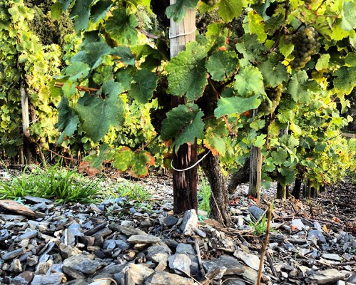 德國摩澤爾產(chǎn)區(qū)以優(yōu)質(zhì)的雷司令(Riesling)葡萄酒聞名于世,其最好的葡萄園大多位于坡度較大的摩澤爾河(River Mosel)兩岸,且園內(nèi)土壤以板巖為主。板巖是在熱力和壓力共同作用下形成的,顏色較為深邃,雖然易碎,但相比其他類型的土壤,其受風(fēng)化影響較小,可以很好地吸收、儲(chǔ)存和反射熱量,幫助葡萄成熟。摩澤爾產(chǎn)區(qū)的板巖土壤主要有藍(lán)板巖和紅板巖,紅板巖區(qū)域多黏土,生產(chǎn)的雷司令葡萄酒口感較為豐富,而藍(lán)板巖區(qū)域的酒則帶有更多的花香。