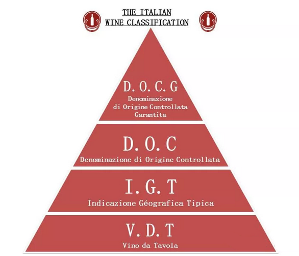 意大利的葡萄酒分級(jí)制分4個(gè)等級(jí),從高到低依次為:DOCG(最高級(jí))、DOC、IGT、VDT(普通等級(jí)餐酒)。不過(guò),這個(gè)分級(jí)制度僅供參考,因?yàn)橐灿泻芏嗑魄f認(rèn)為一些規(guī)定太死板,而不搞這套,有時(shí)一些意大利頂級(jí)葡萄酒竟然只標(biāo)VDT或IGT也不足為奇。
