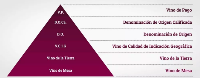 根據(jù)上面的圖片,我們可以看到,西班牙葡萄酒可以粗分為三個(gè)大的級(jí)別,他們由高到低分別是: