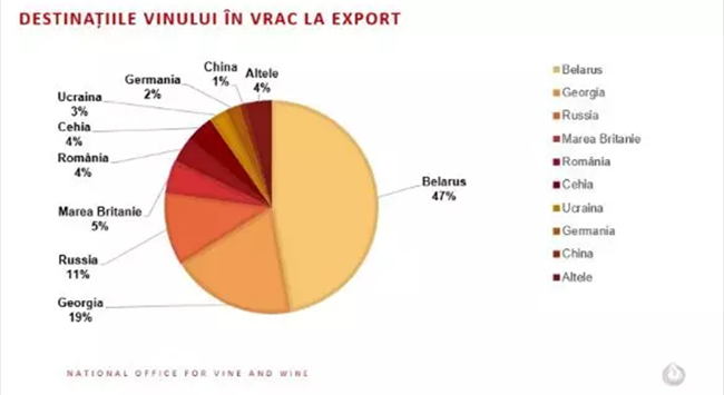 白俄羅斯、格魯吉亞以及俄羅斯進口的葡萄酒總量占摩爾多瓦出產散裝葡萄酒總量的77%。其中,白俄羅斯占比達47%。
